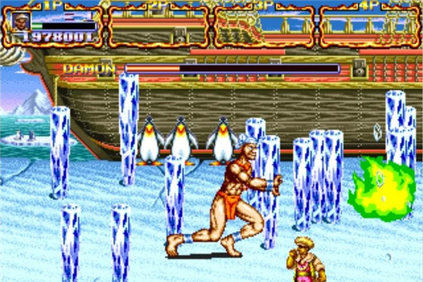 气功大师DAMON攻击速度快、威力大。他腿长,经常用脚踢,能释放气功,还能掉落冰柱。 (最终结局:死亡)