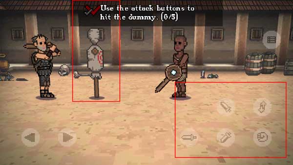 4、以下是实际操作。通过右侧的按钮使用剑攻击木人。攻击完成后,新手教程就结束了。