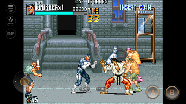 惩罚者,俗称“速度快四”,改编自美国流行漫画,也有同名电影。该剧讲述了一名前警察面对社会不公,单枪匹马充当执法者的故事。与同年的《恐龙快打》不同,道具的作用还停留在《吞噬世界2》的阶段。尽管如此,《惩罚者》由于在CPS1游戏画面上的极致表现,仍然不失为一部杰作。