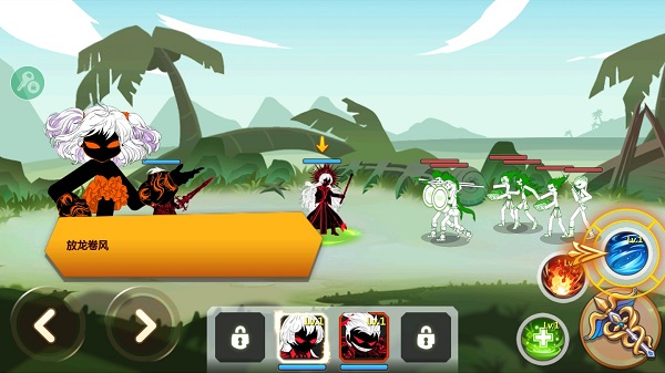 游戏中,玩家可以同时扮演四名火柴人英雄,并且可以通过点击进行切换。