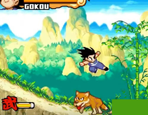 第一层是孙悟空所在的包子山。 A键跳跃,B键攻击,L键使用如意棒。继续往前走,你会遇到一些事情!符号处将会发生一场战斗,需要完成战斗才能继续前进。按上方+A图标中的+A即可使用大跳(孙悟空获得如意棒后,平时也可以使用大跳)。这一关的BOSS是个大怪物,动作比较慢,但是攻击力和攻击范围都比较大。建议跳到他身后击杀他,并小心他的真空斩。