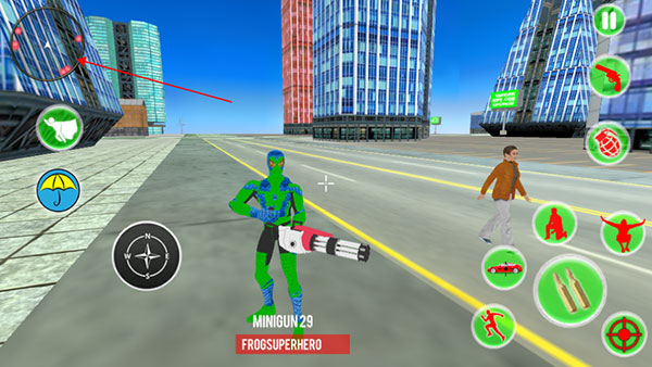 4.这里我们要做的是操作蜘蛛侠英雄消灭地图场景中的敌人(敌人的位置会显示在雷达中)