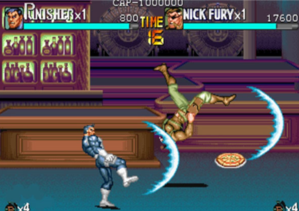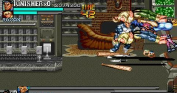 3、耗血必杀技:作为《惩罚者街机》中有效的自我保护手段,耗血必杀技通常是此类格斗动作游戏的“标配”。通过上面两张图,我们可以很明显的看出两者的区别。惩罚者街机采用扫腿,其前后攻击判断大致相同;而尼克则挥动皮带,对后方的判断与惩罚者类似。惩罚者街机对正面的判断力较大,这意味着尼克对他的必杀技的判断力更高。从持续时间来看,Punisher Arcade 似乎稍好一些。