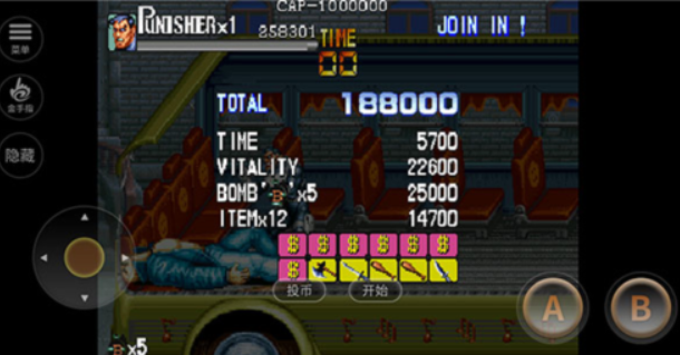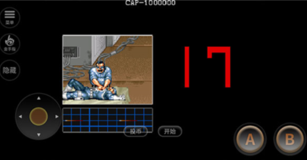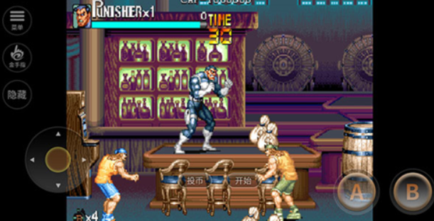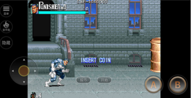 3.设置完成后,左下角的按钮可以控制角色的移动。 A键攻击,B键跳跃。了解后,点击“投币”。