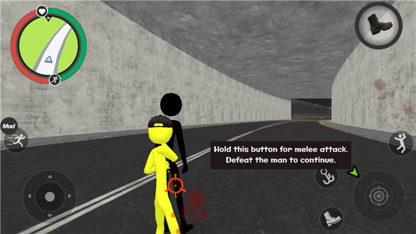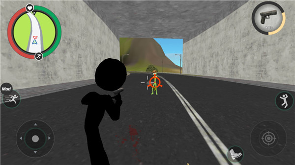 左边移动、加速,右边绳索,攻击(跳跃)、跳跃、右上武器更换,血量、经验显示全部实时更新,让你一目了然。通过每个人的免费游戏,您可以与其他帮派的角色进行交火。期间,你可以通过杀死更多的人来获得经验。如果你杀得更多,就会产生星星。警察和附近的其他角色会特别照顾你并向你发起猛烈的攻击。如何生存以及如何杀死其他角色是你需要完成的任务。