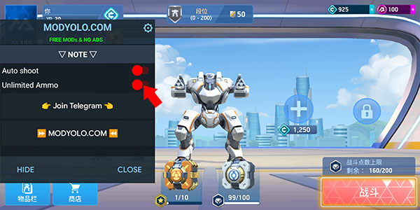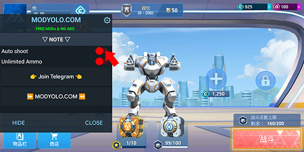 2. 内置菜单目前包含两个功能。第一个是自动射击(没有自我瞄准)。开启后,机甲会自动开火,无需玩家手动按下开火按钮。