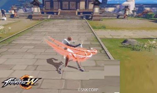 八神八神用一只手集中紫色火焰,向敌人挥舞,将其击中并燃烧。对前方矩形范围内的敌人造成伤害。