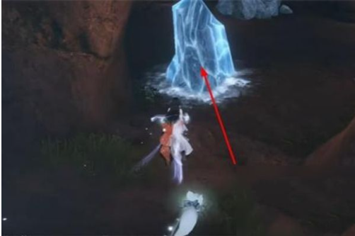 2、就是按照如下图中箭头符号所称的方位来到栖凤岩,直到在前边看到一个冰块儿。