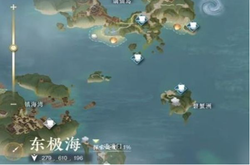 1、首先你要依据坐标位置部位赶到东极海,这个位置能够拿到卷起。