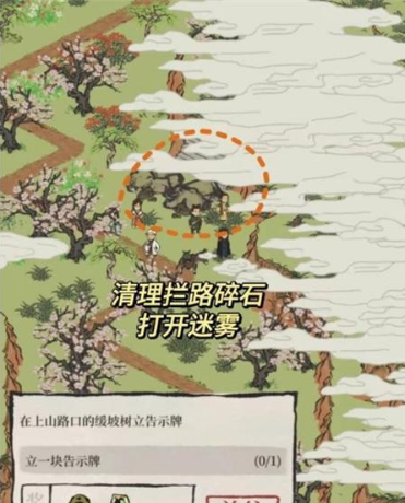 5.在进山街口丘陵地形塑造标语牌,在迷雾里。