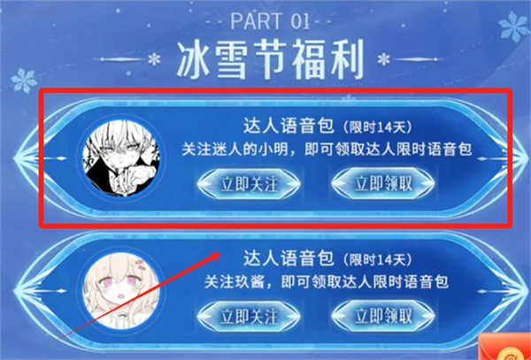 4、滑下来动,在冰雪节褔利处就可以领取到迷人的小明语音包。