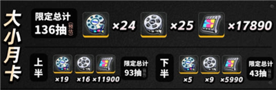 尺寸月卡共计:136抽