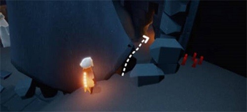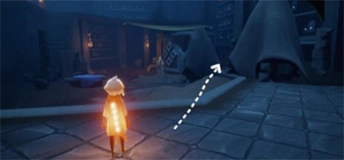 1:我们进入到追忆季新地图中,如图所示的位置,然后我们走到向导右边离最近的黑布背面;