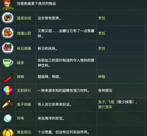 2、刘易斯最爱蔬菜杂烩、玻璃山药、绿茶、辣椒、兔子的脚、黄金南瓜等。