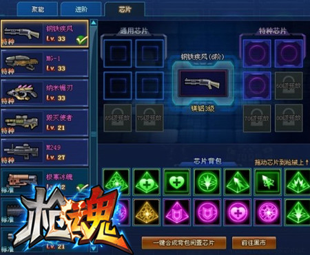 枪魂的芯片其实挺看运气的,相当于变相的赌博系统。如果你并非那么有财力的话建议先用钱来升级装备做稳定的提升战斗力。