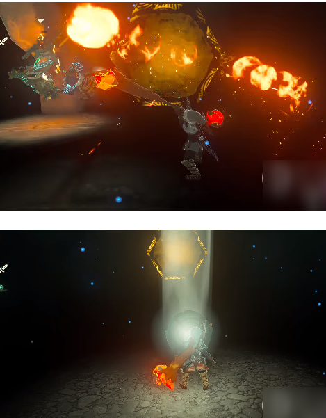4、来到前面的平台后用火把打败怪物,随后将光束打到前面的标记上。