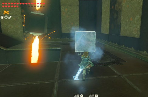 3、进入神庙,运起冰块,躲避火柱上去