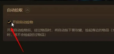 4、开启自动拾取功能:在窗口的右边勾选“开启自动捡物”选项,屏幕中出现“保存成功”的字样就能开启自动拾取功能了。