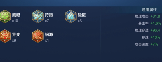 第二套铭文搭配:10异变、10狩猎、10鹰眼