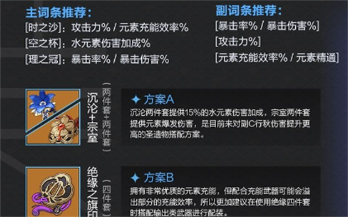 2、副词条优先考虑“元素充能效率”/元素精通