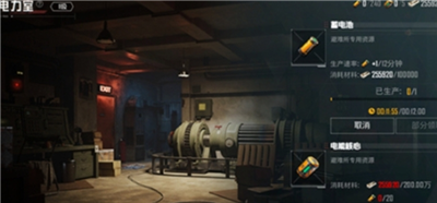 电力室是避难所的基础设施,可以提供整个避难所的日常消耗;