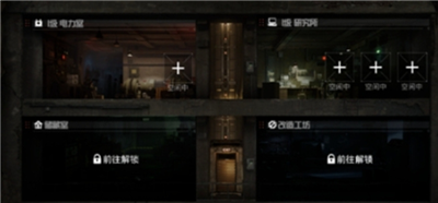 目前,避难所上线了电力室研究所、储藏室和改造工坊四个房间。