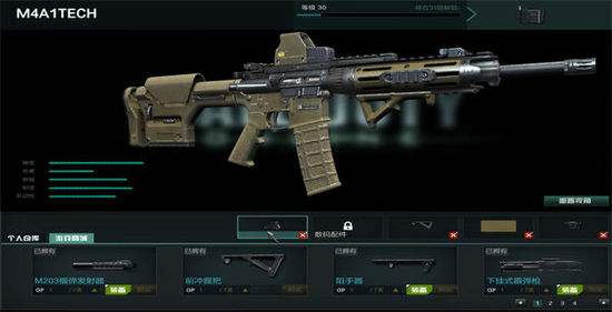 M4A1 Tech(必买,盖过ACR存在的就是他,变态的稳定性和爆头率,让你一再体验到枪可以打的这么稳,武器必须练到满级)全自动突击步枪