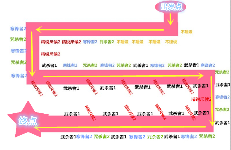 塔防是要自己去建防御NPC的。这些NPC攻击每波怪物,目前来说,一般都有三条创建路线走:路线说明:“初级”→“进阶1”→“进阶2”→“进阶3”。先是物理系主攻:建物理攻击,以“戍卫”→“弓手”→“精锐弓手”→“长弩”然后是法系减防:建法系 削弱BUFF,以“方士”→“咒系方士”→“散疫者”→“散疫大师”再有法系减速:建法系 减速BUFF,以“方士”→“冰系方士”→“寒锋者”→“寒锋大师”。