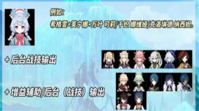 例如:希格雯+芙宁娜+万叶+夜兰/神里绫人/行秋。