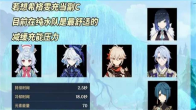 2、如果将希格雯作为副C的话,主要依赖大招打伤害,但需要其他输出来补足空窗期,推荐走纯水体系阵容。