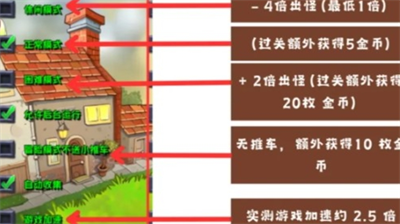 3、困难模式:+2倍出怪,同时通关后额外获得20枚金币;
