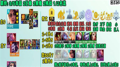2、羁绊构成:2巨像2名流2挑战3帝国2黑魔;