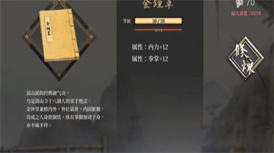秘籍的属性很棒,足足12点内力和拳掌,配合一个拳掌的秘籍,直接掌击就行,对方根本顶不住。