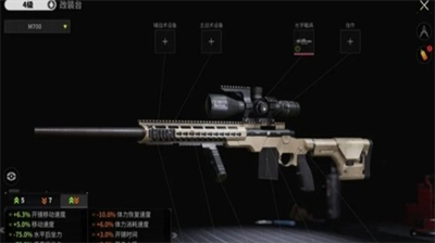 在一些较为空旷的地图中(如秋山),我们需要有狙击能力,便于中远距离对枪作战,搭配配件时看重开镜移动能力,有效射程,和隐蔽性。这里以改装多样的M700为例,我们可以选择超远距离开镜狙击的紫色枪管,这个枪管带不了消音器,但是可以增加30的有效射程,如下图。