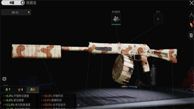 在一些室内作战或者跑图夺点的排位赛中,近距离突脸的作战方案也十分受欢迎,主要武器是冲锋枪和散弹枪,既然需要近战,和可以适当放弃精准度和开镜属性,转而选择移动速度和耐力属性,这里以SG-12为例,这把散弹的配件提供了大量的体力恢复和移动速度,在机动性上绝对是顶尖的存在,同时也拥有超强的近距离作战能力,属性和配件如下图所示。