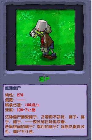 自身携带防具,拥有很高的防御能力,头顶的机枪射手可以发射子弹攻击植物。