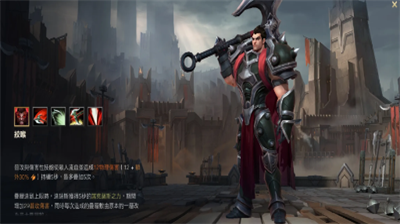 德莱厄斯是一位近战物理输出英雄,以其标志性的大斧和残酷的执行方式著称。德莱厄斯的技能以物理伤害为主,擅长在战斗中持续施加压力,并通过执行低血量的敌人来彰显他的威猛。德莱厄斯的技能包括: