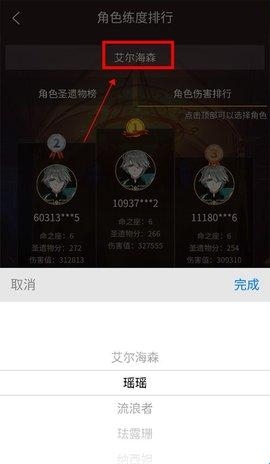 2、再从上方人物角色四星圣遗物榜转换到损害榜,点一下上方的名字可以选择不同的人物角色查看。