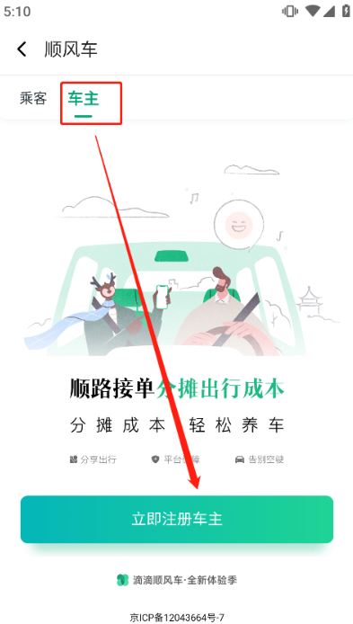 (2)选择进入“车主”页面,我们点击下方进行注册