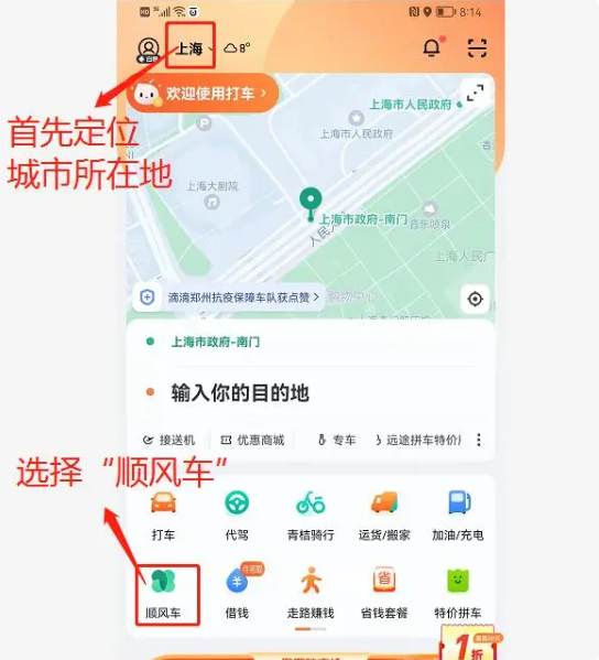 图1-定位-选择顺风车