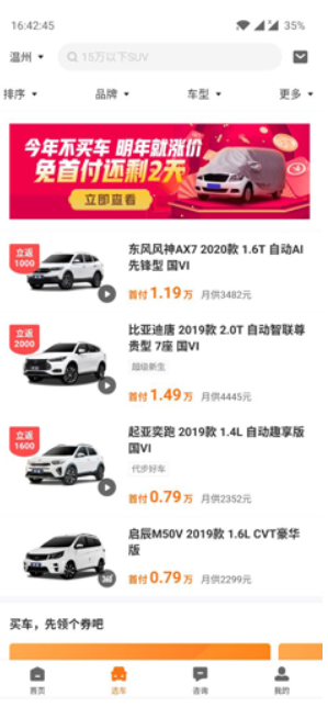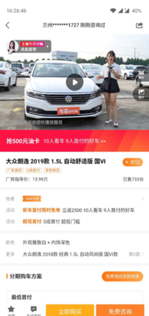 优点:毛豆新车APP门槛很低。官方广告称,首付3000元起即可购买新车。小编进去看了一下最新款的大众朗逸,0首付就可以开走。