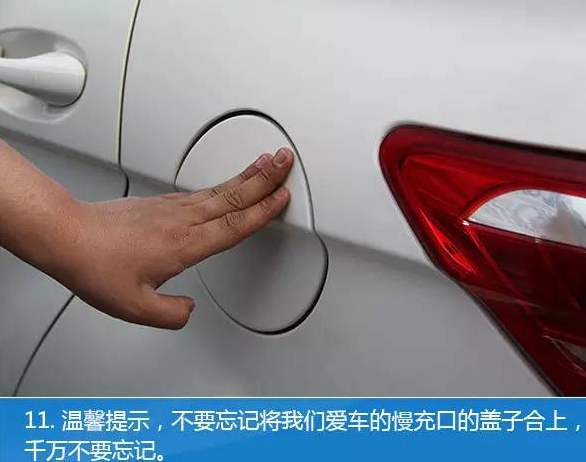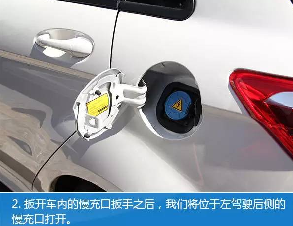 2. 转动车内慢充口扳手后,打开位于驾驶侧左后侧的慢充口。