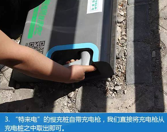 3、特莱电慢充站自带充电点枪,取出后可直接使用。