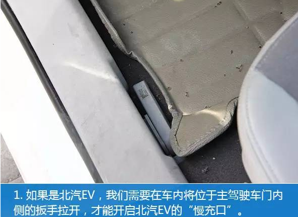 1. 首先,拉动位于驾驶员车门内侧的扳手,打开“慢充端口”。
