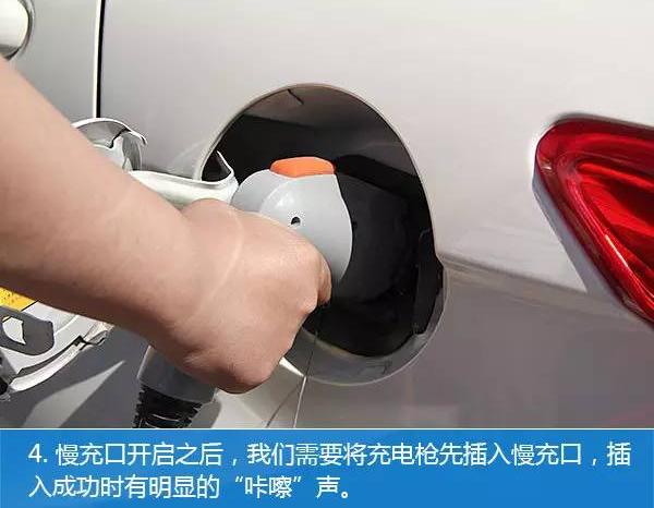 4. 将充电枪插入慢充端口。当出现“咔哒”声时,表示插入成功。