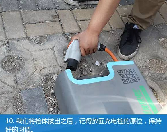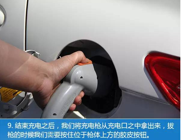 9. 拔出充电枪时,需要按住枪体上方的橡胶按钮。