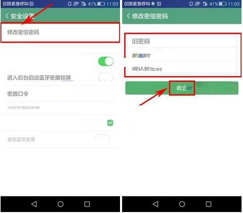 3) 点击【修改密信密码】,然后点击编辑框输入原密码和新密码,最后点击【确定】。 (如下图)