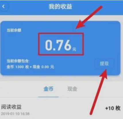 3、完成任务后,您可以在我的收益界面看到赚到的钱,点击提现即可提现。