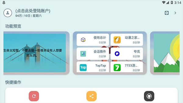 1. 下载并安装Session widget应用程序,点击屏幕上的软件图标,进入软件主页,如下图。
