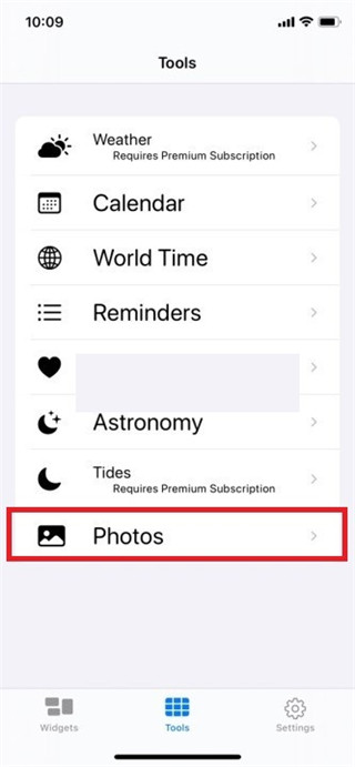 1.我们打开应用程序,选择下面的工具,然后选择照片